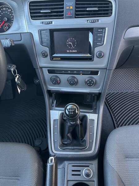 Introducing the 2015 Volkswagen Golf TSI Launch Edition, a blend of performance and efficiency in a compact design. Powered by a robust 1.8L Turbo I4 engine delivering 170 horsepower and 200 ft-lbs of torque, this vehicle promises a spirited driving experience. With its Platinum Gray Metallic exterior and Titan Black cloth interior, the Golf exudes a modern aesthetic while providing comfort for all passengers.