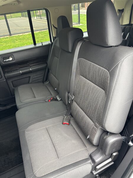 The 2016 Ford Flex SEL is a versatile and spacious crossover SUV, powered by a robust 3.5L V6 engine that delivers 287 horsepower and 254 ft-lbs of torque. This model comes with a variety of factory default features, including a comfortable leather-trimmed interior, a 10-way power driver's seat, and a 6.5-inch touchscreen infotainment system with SYNC voice recognition. Safety features include rear parking sensors, a rearview camera, and a suite of advanced airbags. Additionally, the Flex SEL offers dual-zone automatic climate control, keyless entry, and a premium sound system for an enhanced driving experience.