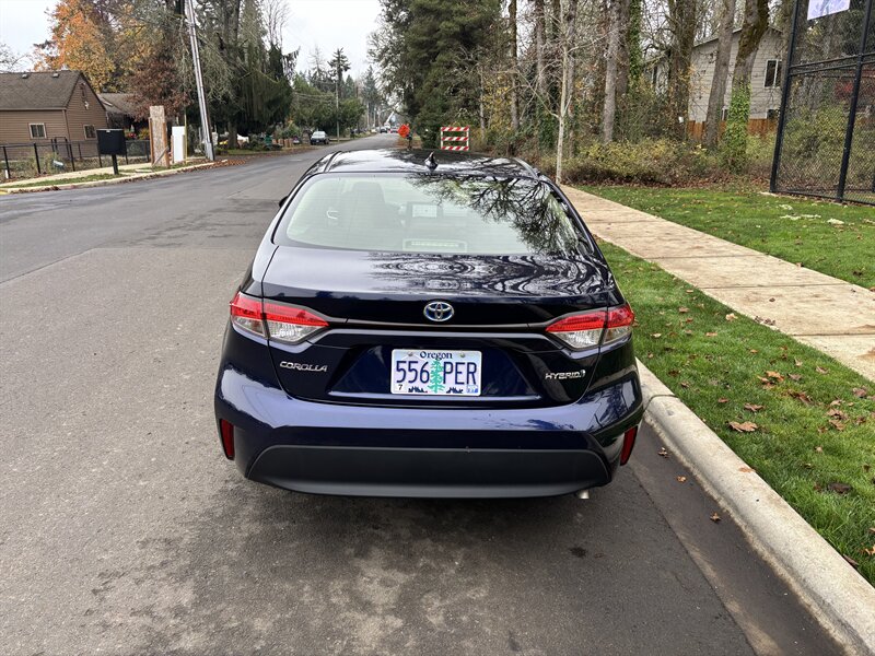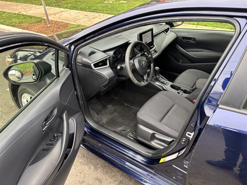 The exterior is finished in a striking Blueprint color, while the interior features sleek black upholstery, providing a modern and comfortable driving experience. Standard factory features include Toyota Safety Sense, a suite of advanced safety technologies, a 7-inch touchscreen infotainment system with Apple CarPlay and Android Auto compatibility, adaptive cruise control, lane departure alert, and automatic high beams. Additionally, the Corolla Hybrid LE comes equipped with LED headlights, a rearview camera, and a spacious trunk for added convenience. This vehicle is in excellent overall condition, making it a reliable choice for any driver.